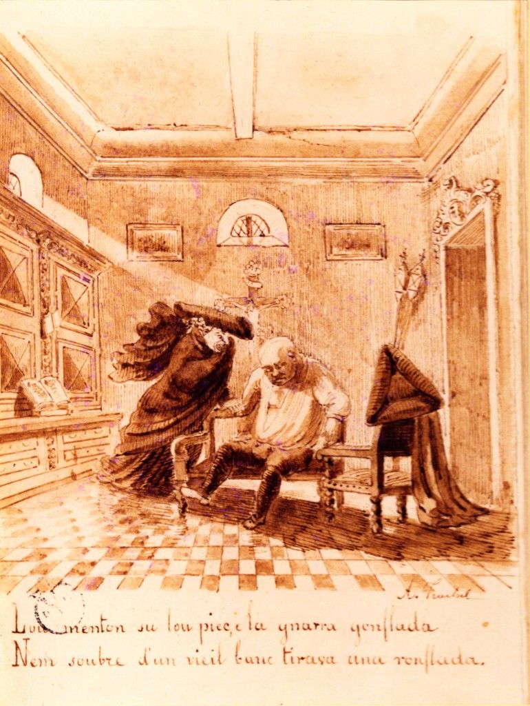 Ce premier texte est extrait de la Nemaïda ouvrage écrit par Rosalinde Rancher en 1823. Il s’agit d’un poème comique écrit en nissart sur les relations entre l’église et le peuple niçois. L’extrait diffusé décrit le pique-nique d’un festin à Cimiez devant le couvent. Il s’agit du chant troisième vers 293 à 314 de l’œuvre de la Nemaïda.